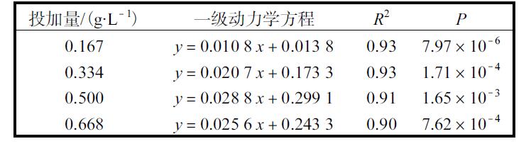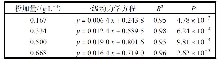 表1 不同催化劑投加量對模擬草酸廢水降解動力學(xué)的影響