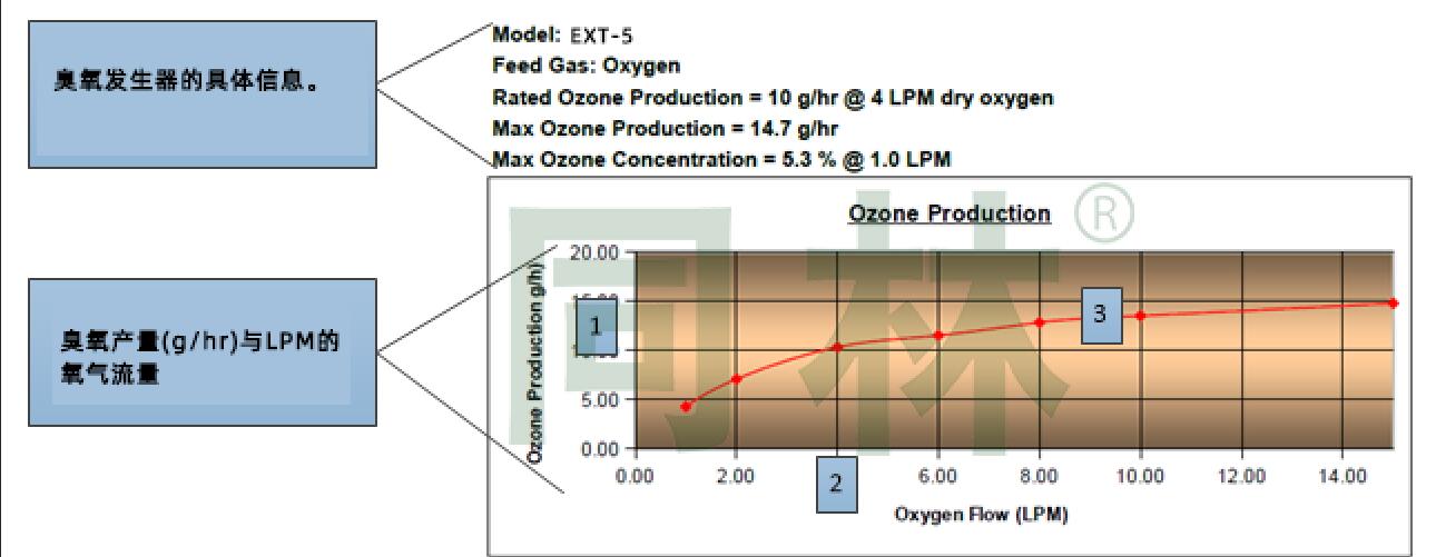 下面的圖表是臭氧發生器性能圖表的一個例子。